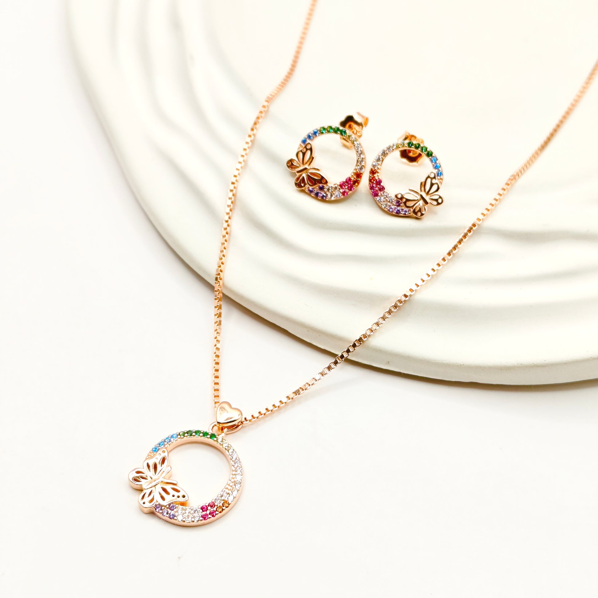 Butterfly Rosegold Plated Jewellery Set 925 Silver