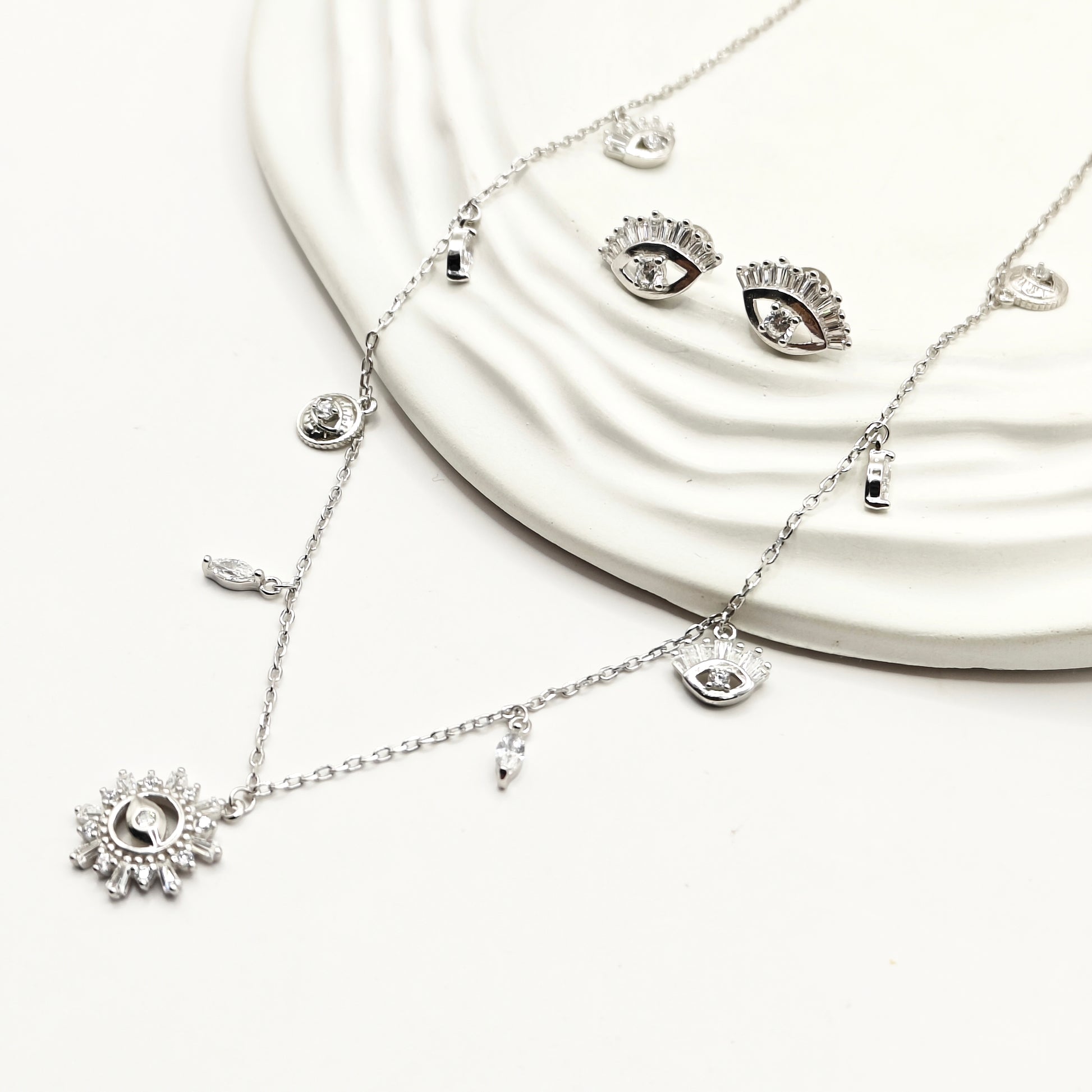 Evil Eye Charm Jewellery Set 925 Silver