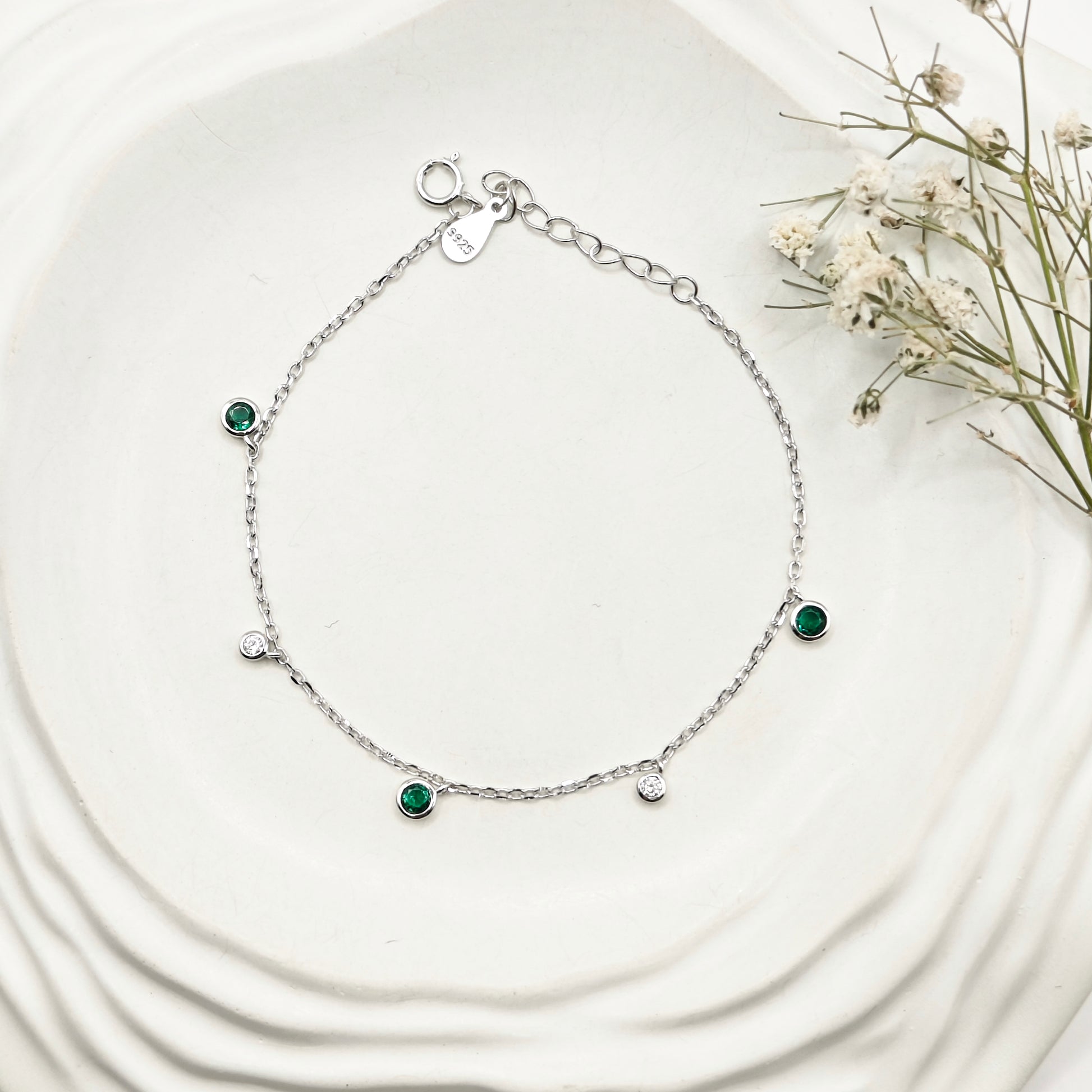 Green Charm Bracelet 925 Silver