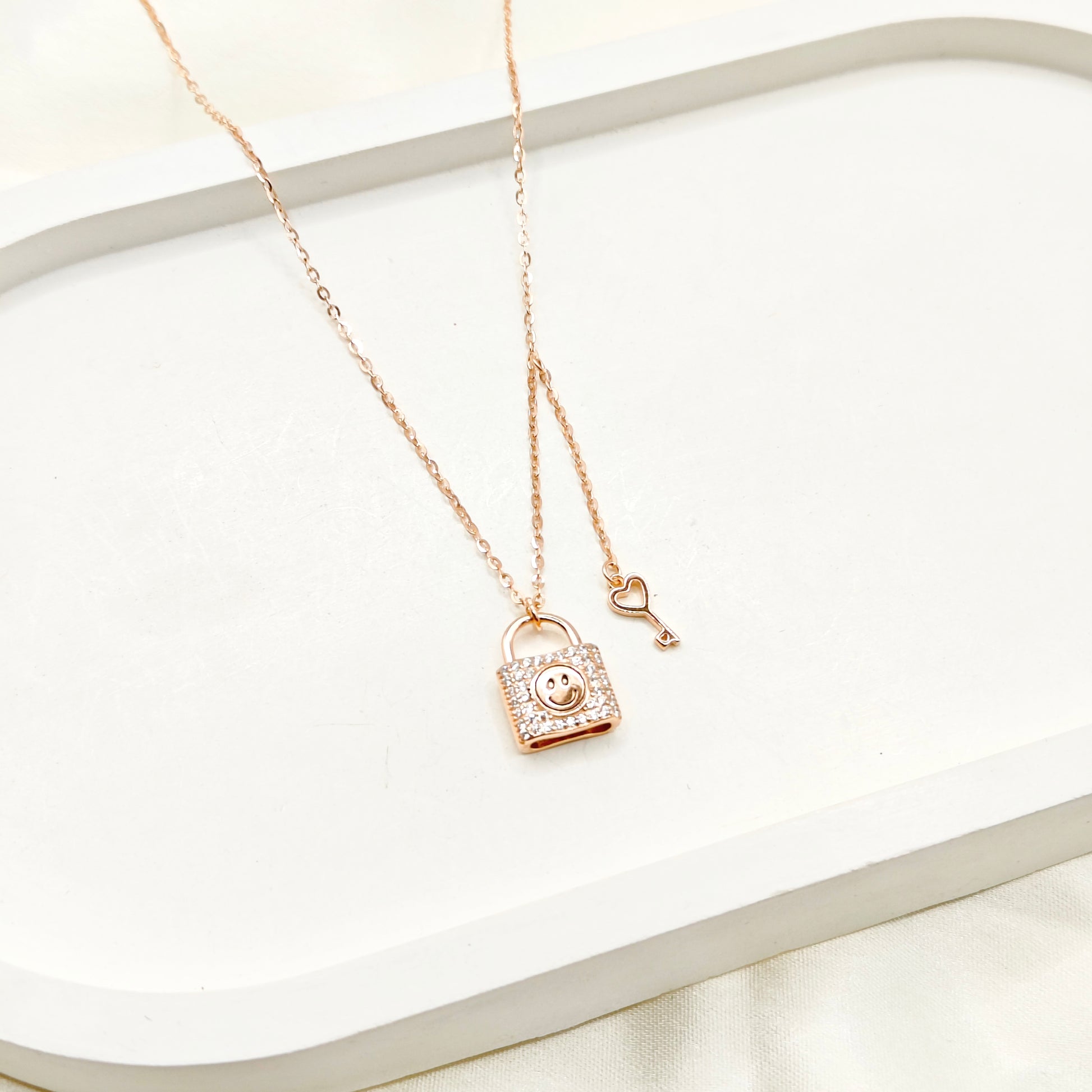 Lock n Key Rosegold Plated Necklace 925 Silver