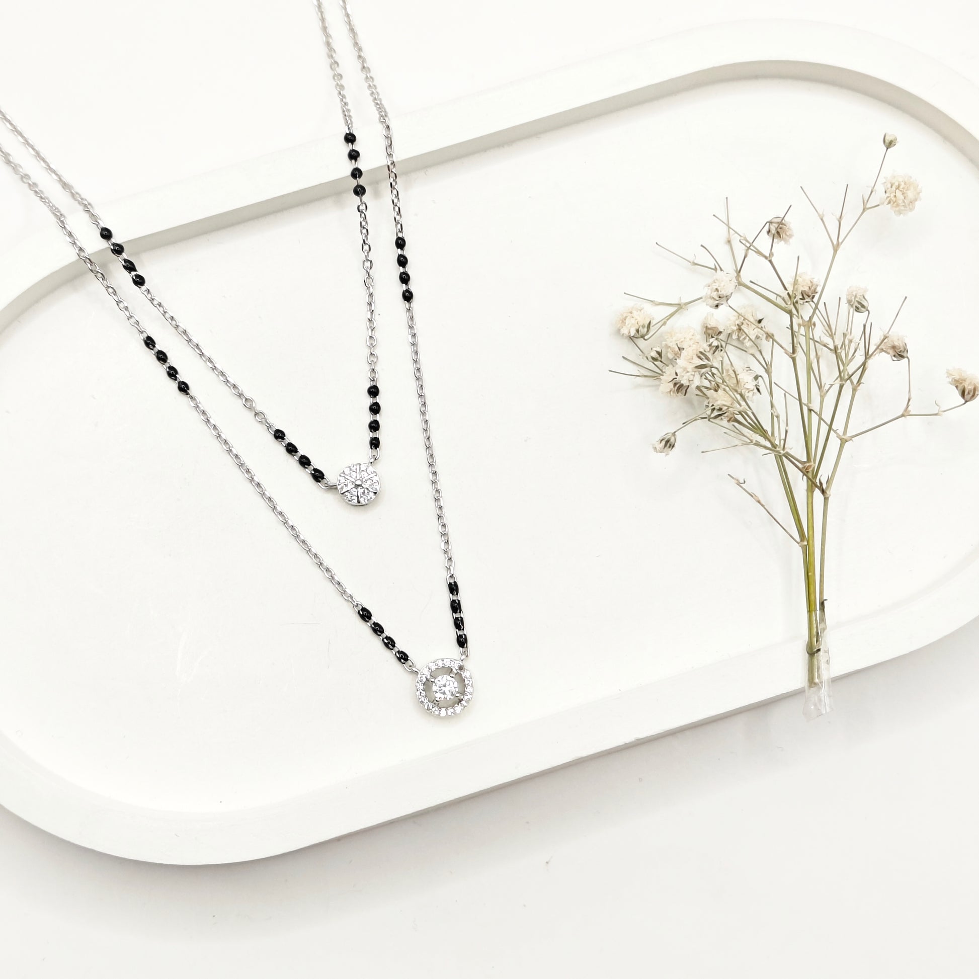Halo Solitaire Layered Mangalsutra Necklace 925 Silver